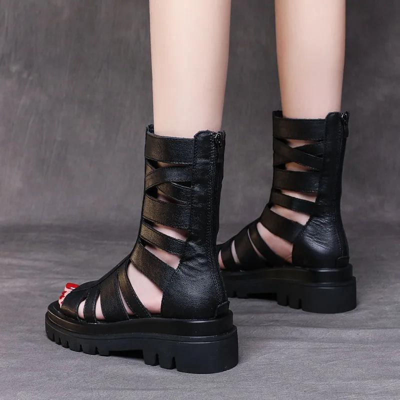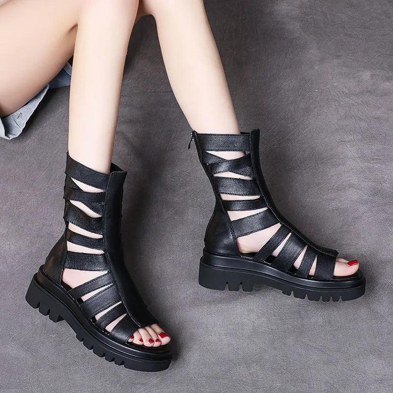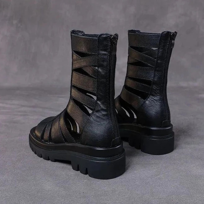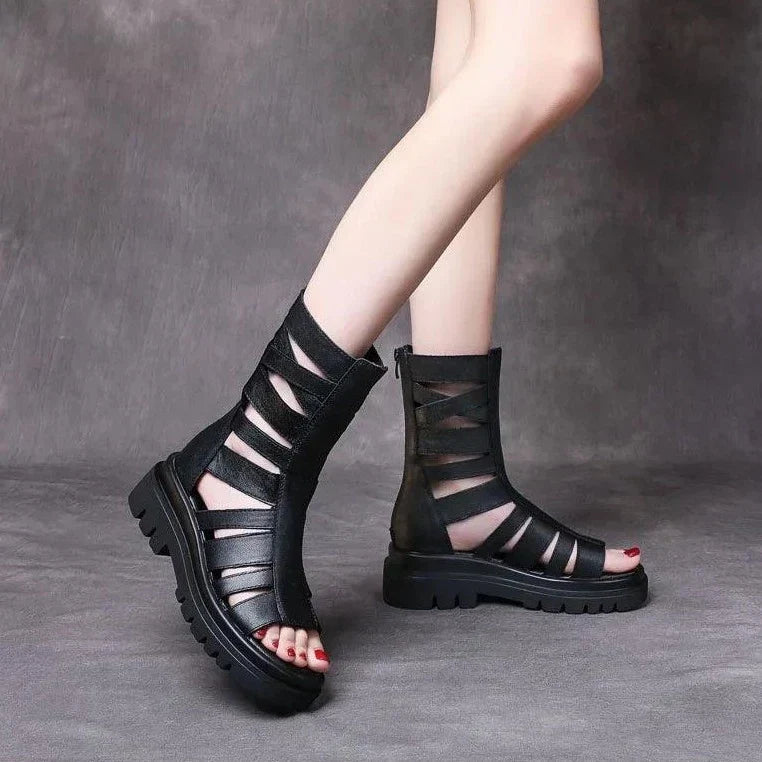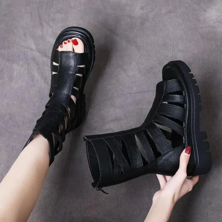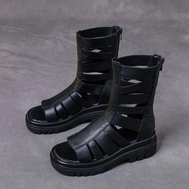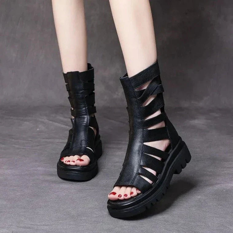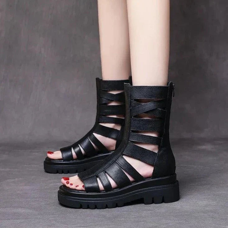 Diese Wadenlangen Stiefel mit Riemen und klobiger Sohle bieten den idealen Mix aus Komfort und Stil. Sie sind perfekt für Strandbesuche oder entspannte Spaziergänge in der Stadt. Mit ihrem römisch inspirierten Design sind sie nicht nur funktional, sondern auch ein echter Hingucker.